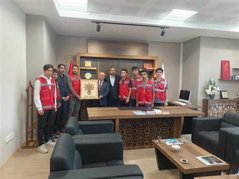 1-7 Ekim Cami ve Din Görevlileri Haftası münasebetiyle, Kars İl Müftülüğü Gençlik Koordinatörlüğü öncülüğünde Üniversiteli Gençler, Önder öncülüğünde Kars İmam Hatip Lisesi erkek öğrencileri İl Müftüsü Yavuz YILDIZ'ı,
