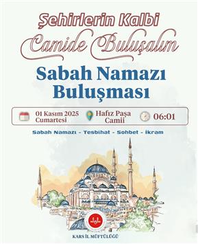 Kars İl Müftülüğü organizesiyle her hafta bir camimizde düzenlenen 'Sabah Namazı Buluşmaları' programına davetlisiniz.