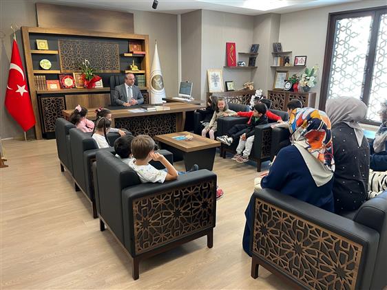 1-7 Ekim Cami ve Din Görevlileri Haftası münasebetiyle, 4-6 Yaş Kur'an Kursu öğreticileri ve minikleri İl Müftüsü Yavuz YILDIZ'ı ve İl Müftü Yardımcısı Fatma SAVCI'yı makamında ziyaret ettiler.